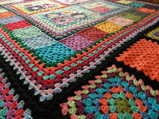 Another ending-----my SaMpler BlaNKEt!!!! I finally have finished the thing and I absolutely LOVE IT!!!!!:) I haven't even used it yet. It's folded and on the sofa and I just stare at it, hardly able to believe that I made it. Here's a look!